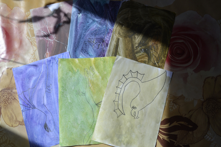 На какое-то время мы превратились в волшебников. И перенеслись в мир, в котором ещё существовали драконы. Они были прекрасны. Но, если бы вы попросили нас описать их, у нас ничего не вышло бы, так как таких цветов в природе не существует. И тогда волшебники решили сами создать эти цвета и дать им названия.