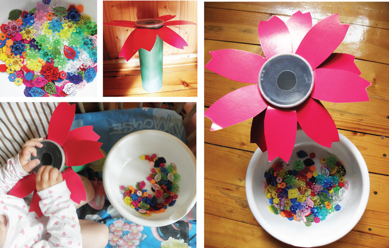 Во-первых, успехом пользовался такой сортер-цветок (банка от чипсов принглс+цветная бумага и картон):