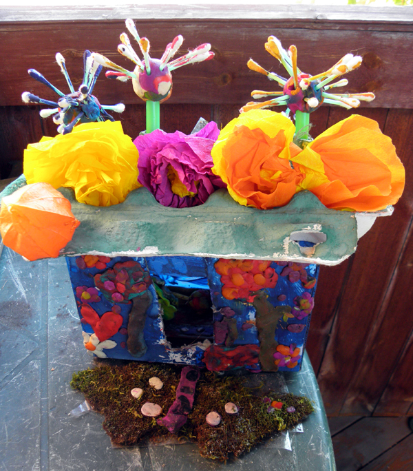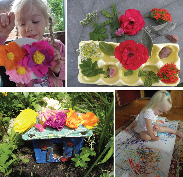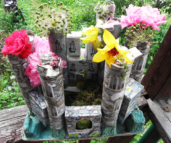 Соня может часами играть в фей, куколок и прочее девичье богатство. А где феи, там всегда много цветов! Вот такие замки-домики каждодневно украшались цветами, листиками и прочей красотой: