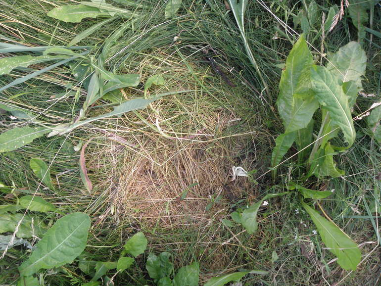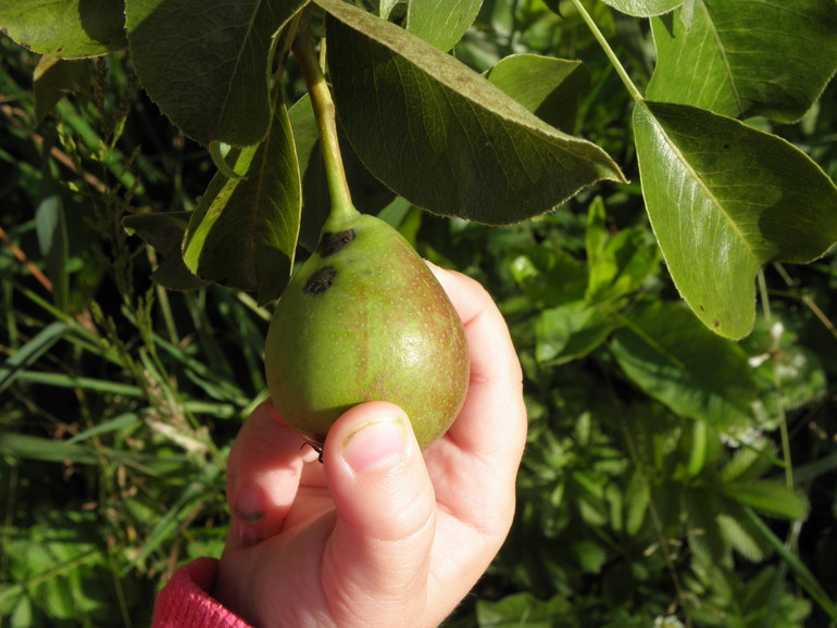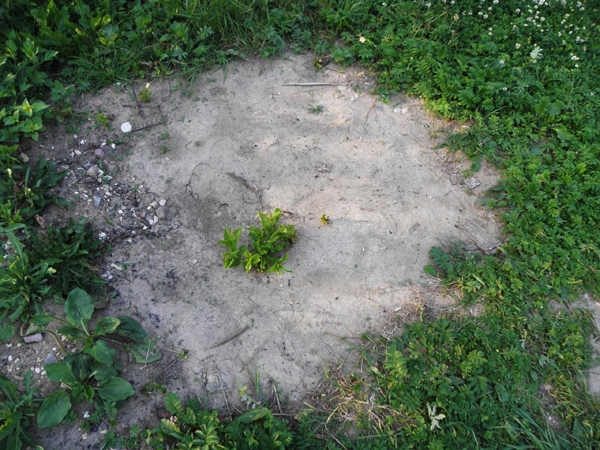 А вот тут стояла песочница несколько лет, так трава под ней и вовсе перестала расти, одна лишь вишня через корни дала росток: