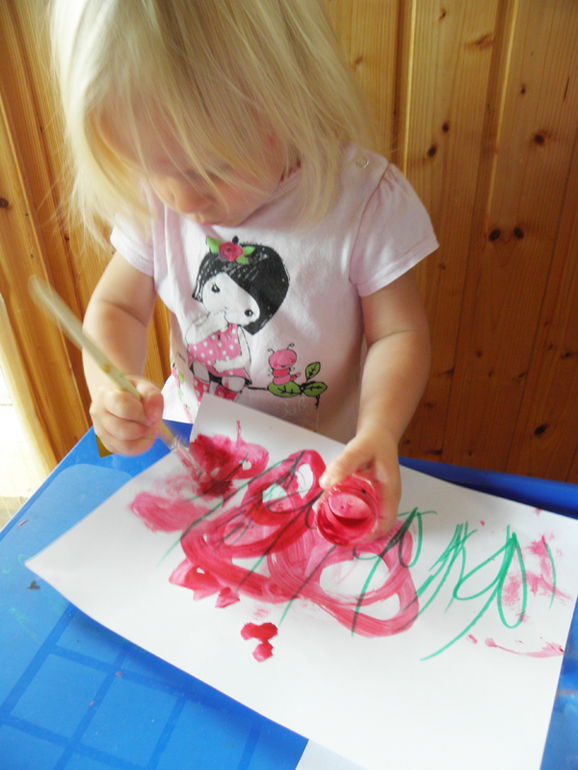 Ну и покрасить-поклеить тоже с удовольствием (кисти, штампы, вилки, фломастеры):