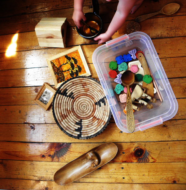 Порылись в доме, собрали коробку со всем, что сделано из дерева. Оказалась у нас деревянная посуда, игрушки, украшения. Да что уж там говорить, стены, пол и потолок - тоже из дерева)))