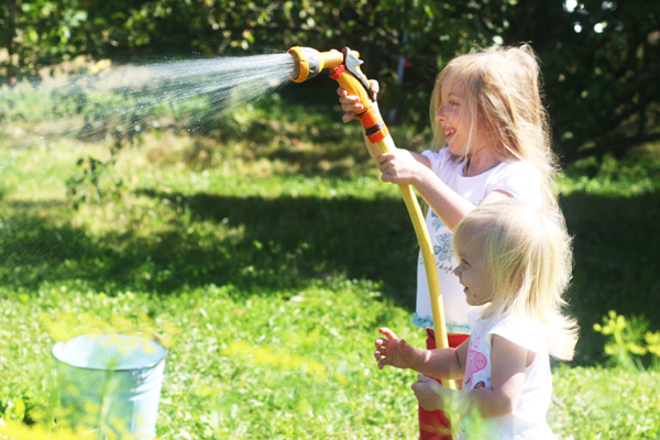 Не обошлось без ухода, прополка конечно не вариант, зато поливать из шланга - всегда рады. И чувствую, это любовь на года! Так как и сейчас Лиза готова стоять со шлангом чуть не час!)))