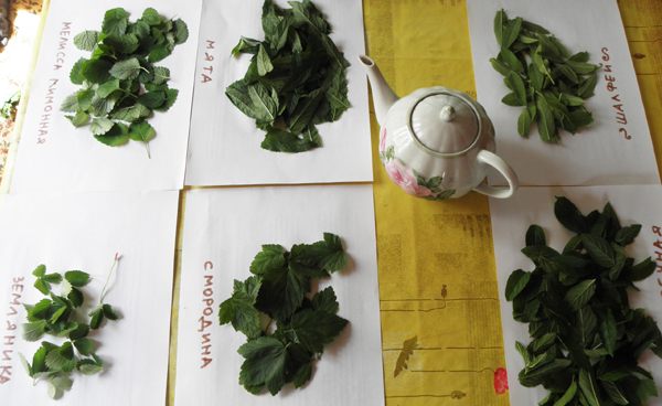 - проводили «нюхательный эксперимент» с собранными в саду травами, (определить по памяти растение, найти 2 одинаковых запаха). Оказалось, что у нас на даче уже достаточная богатая коллекция трав, прям настоящий аптекарский огородик собрался, начиная от смородины-земляники и заканчивая несколькими видами мяты, мелиссы: