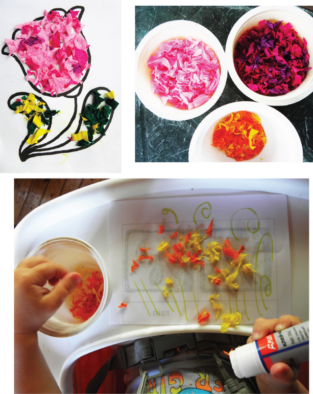 Оч интересные оказались задания с посыпанием нарезанных кусочков крепированной бумаги, у нее интересная текстура: