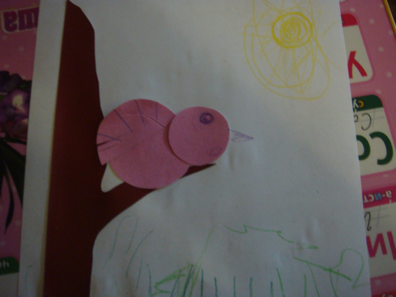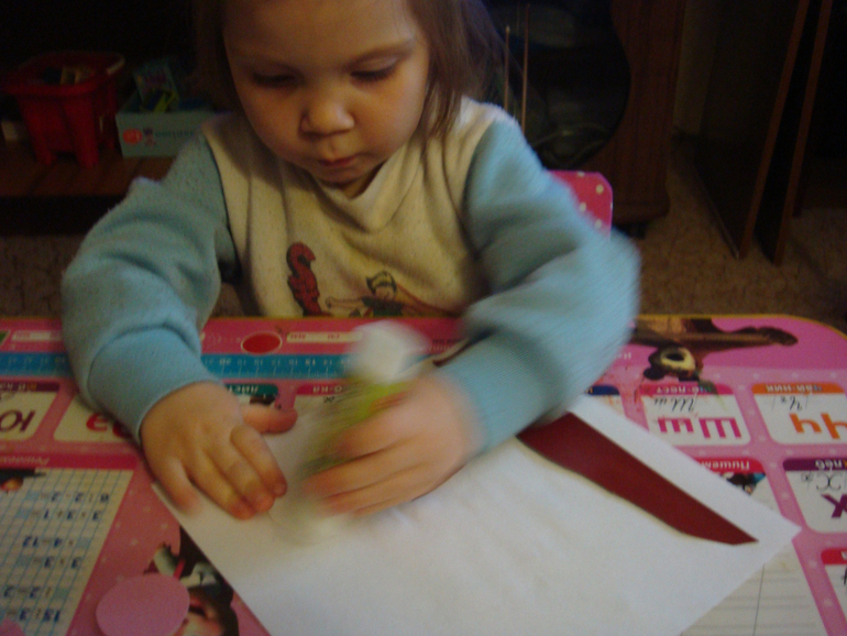 И занялись аппликацией. Крылышки Лиза слегка подрезала и все сама наклеила.