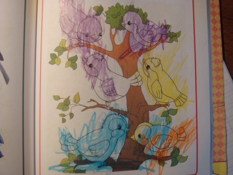 Затем Лиза сама показала на перья, но не назвала слово. Я помогла, сказала, что у птичек перышки, а у животных шерсть. На клюв Лиза сказала - нос. Надо учить новое слово.