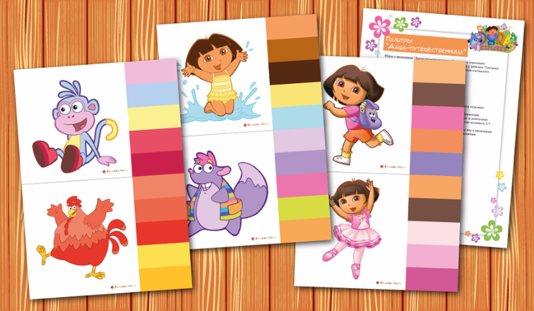 14 палитр с героями и кадрами из мультфильма "Даша-путешественница"