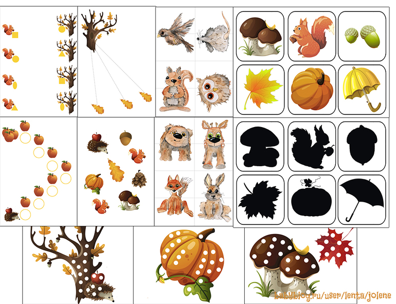 А чтобы не скучать в дождливые дни, предлагаю вам для ознакомления несколько страничек заданий из Тематического комплекта "Осень".