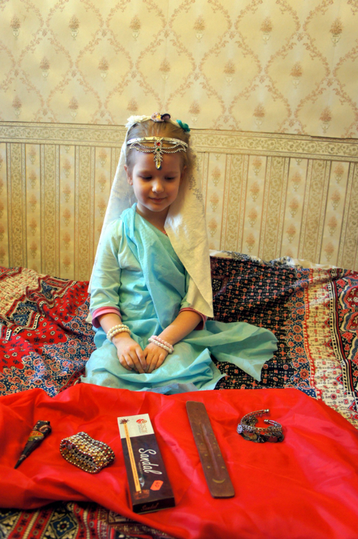 А это я уже развлекалась с графическим редактором, помещая старшую доченьку Киру то во дворец Махараджи, то к Золотому храму в Пенджаб, то просто на индийскую улицу :)