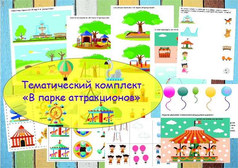 Тематический комплект "В парке аттракционов" позволит Вам весело и познавательно провести занятие с малышом.