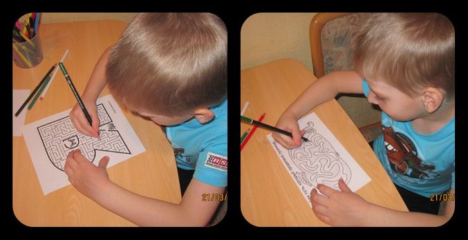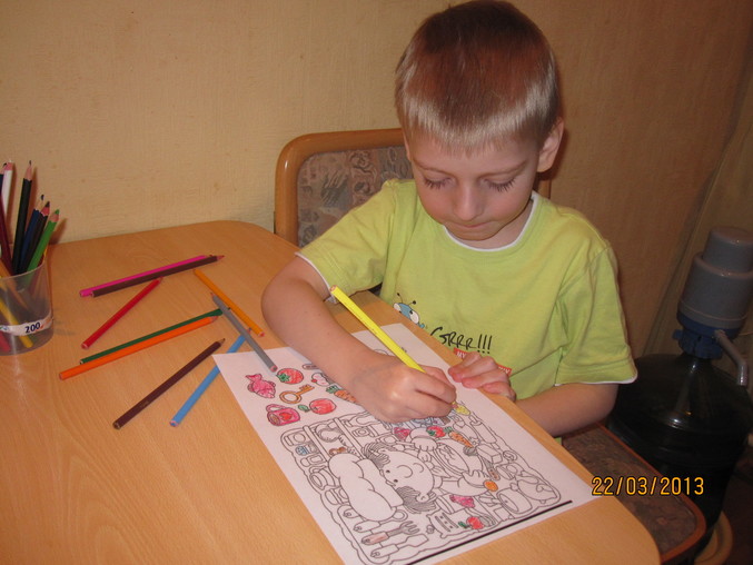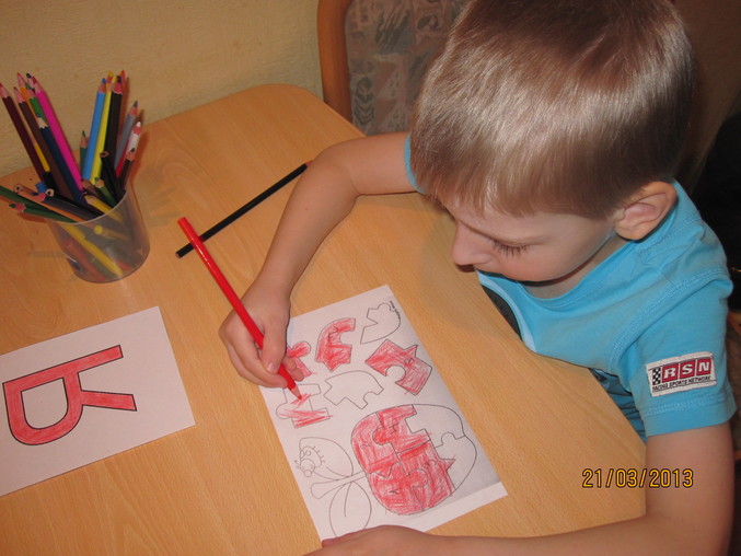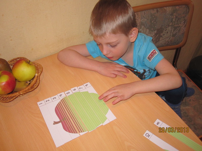 Далее искали частички пазла, раскрашивали и ставили на них цифру