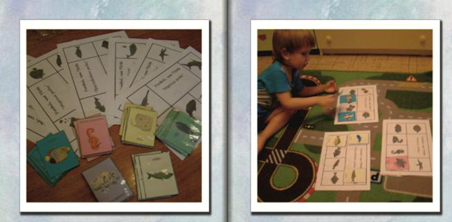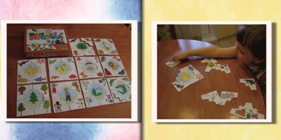 Развивающая игра Кто больше? Кто меньше? Хорошо учит ребенка логически мыслить, размышлять и самостоятельно оценивать правильность своих действий. Составляли цепочки из карточек с пазловыми замками. Там есть одна цепочка по нашей ТН (Кит, акула и морской конек).