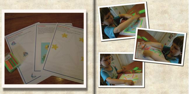 Счетные палочки наверно у всех есть, раньше к ним никак не проявляли интереса, ну строит мама дорожку и что? Разве что только по баночкам сортировали. Решила попробовать шаблоны. Создала для эксперимента несколько и ребенок заинтересован.