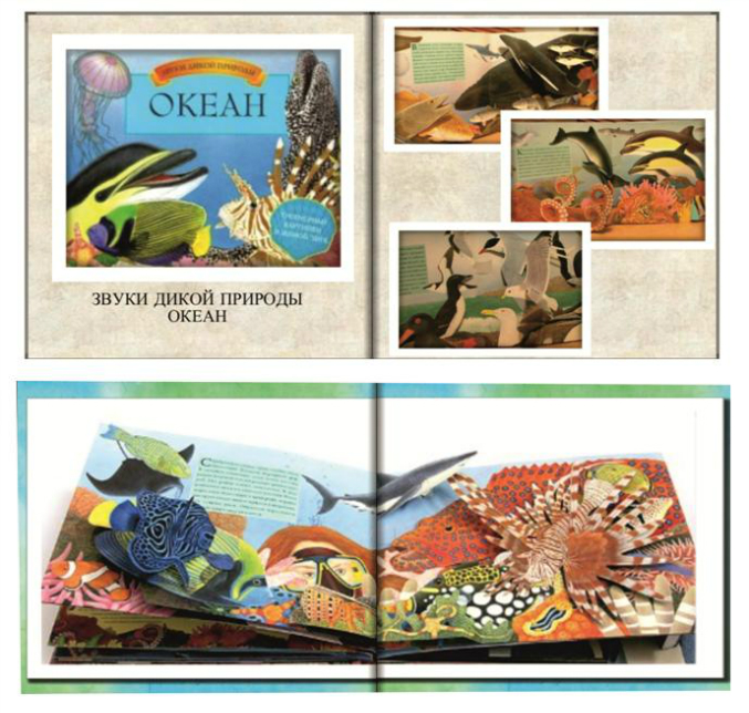 Океан. 3d книга для детей. Книга потрясающая. В книге 6 разворотов с изумительными картинками и звуковым сопровождением. Звуки океана, крики чаек, бульканье вод, рев морских котиков - все очень натурально.