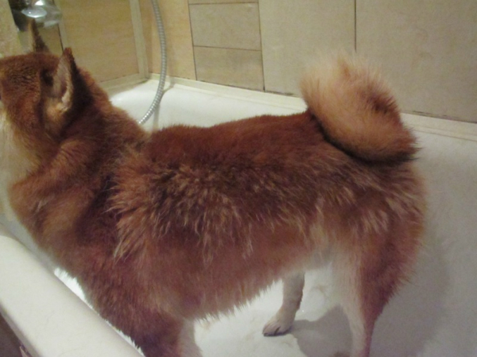 Так как собака моя перестала выставляться, то всю зиму я ее и не мыла и вот с наступлением весны - решила помыть!!!! Ужас, столько шерсти вылезло, все-таки надо мыть чаще!