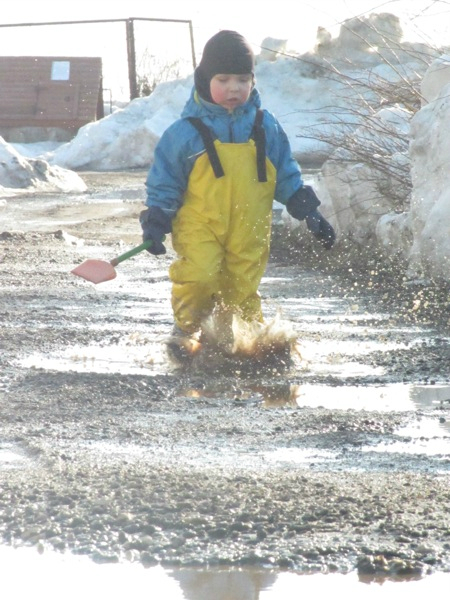 и конечно же лужи!!!!! Помню когда я была маленькой: с мамой у нас была договоренность, что я наступаю только в те лужи, которые попадаются у меня на пути, и не бегаю по всем лужам. Хорошо, что сейчас есть такая одежда в которой маме не стоит беспокоится, что ее ребенок намокнет! Так что по лужам Степа бегал с большим удовольствием!