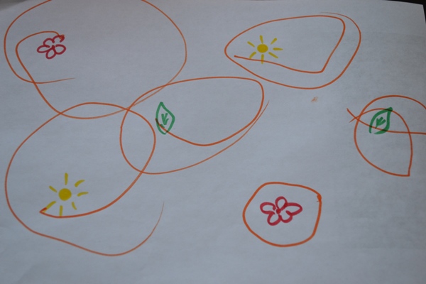 Еще мы очень любим обводить в кружки разные мелкие рисунки. Вот один из примеров.