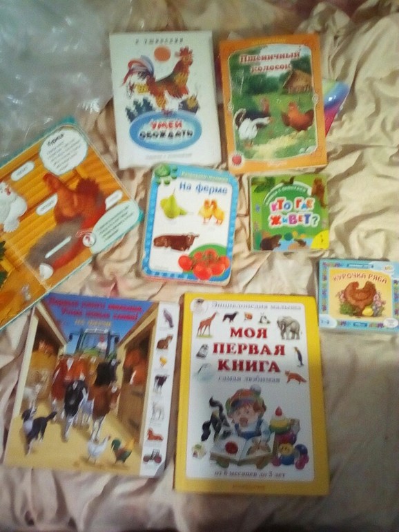 С удовольствием почитали и рассмотрели иллюстрации книг про курочку.