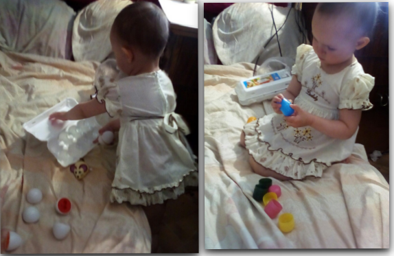 По узору Алина разобрала, а вот по цвету и размеру возникли трудности, возможно из-за неправильно подобранного мной дидактического материала.