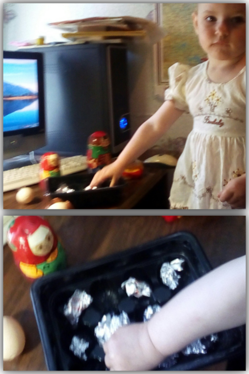 Собирали разбросанные мышкой яички. Алина легко справилась с заданием.