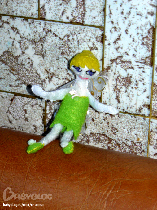 Я сшила из фетра некое подобие феи Динь-Динь. Теперь феечка с дочей на кухне, на прогулке, в постели.