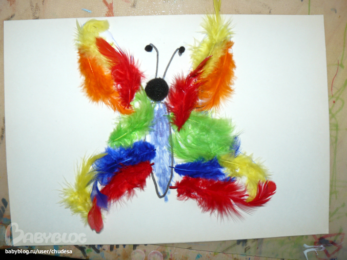 Незадолго до этой недельки я заказывала на Read.ru цветные перья, помпоны, яркие пуговки, синельную проволоку. Эти непривычные материалы мы использовали в творчестве.