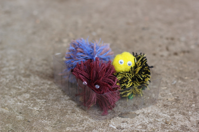 На последней записке было сказано поискать инопланетян под деревом. И мы нашли их - симпатичных помпончиков с глазами =)