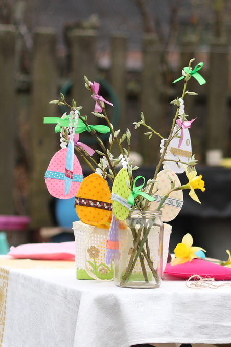 6. Я сшила фетровые яйца, а Катя украсила ими веточки.