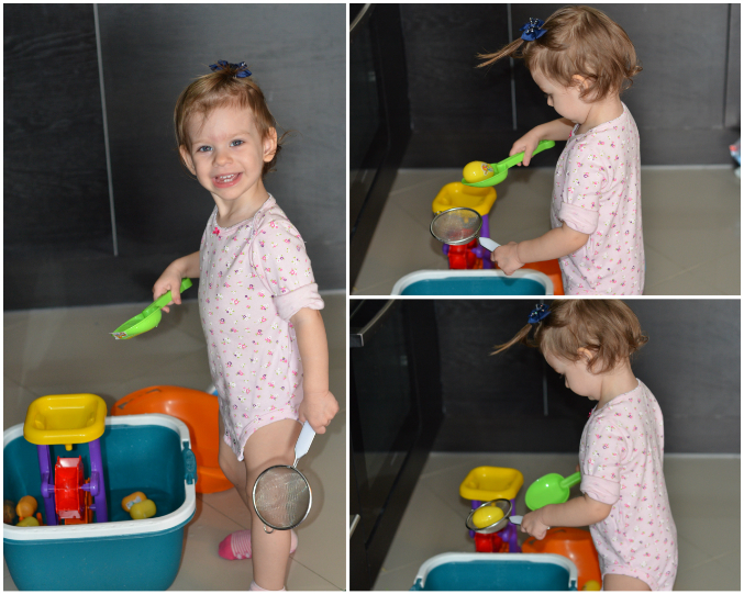 Игры с водой:вылавливаем различными приспособлениями яички из киндеров.