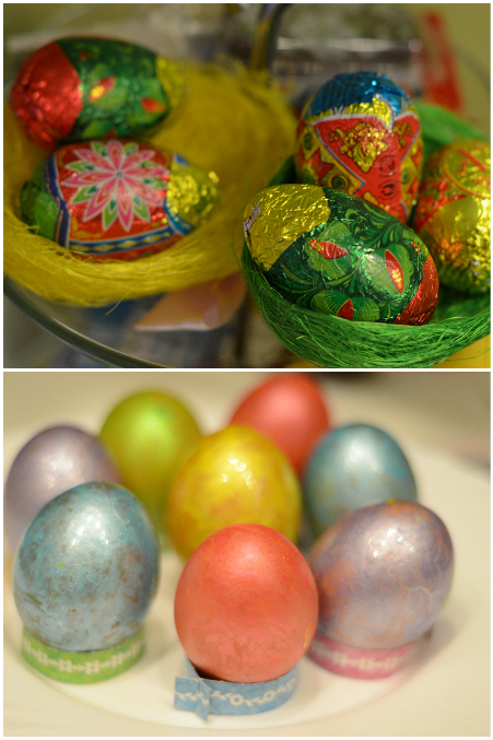 Немного покрасили яички и купили шоколадных.