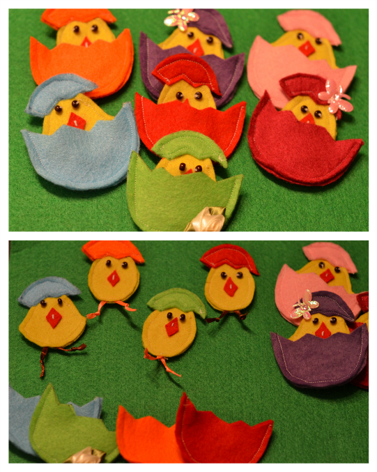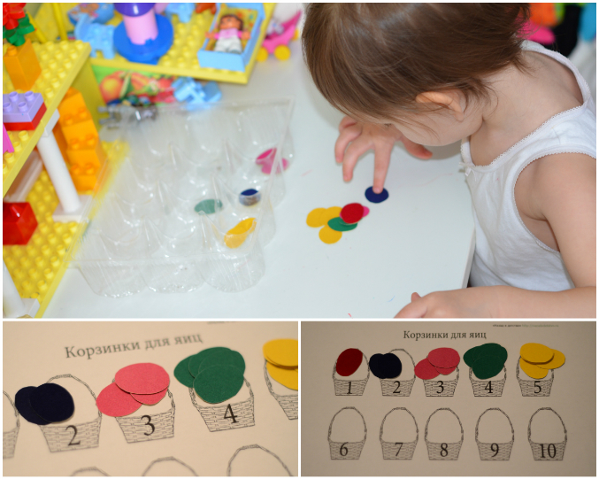 Учим счет. да и просто сотрировка по цвету. Яички из самоклеющейся бархатной бумаги. На следующий год пригодятся еще.