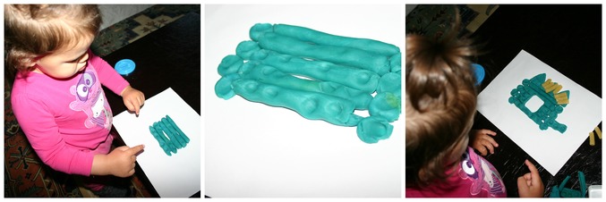 На картон в центре сложили колбаски друг на друга. Прижали пальчиками.