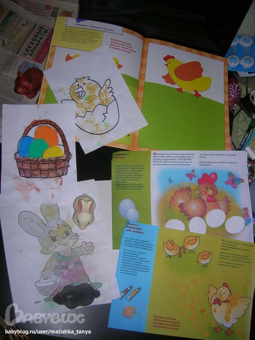 Хотела еще сделать сенсорную коробочку, наклеить парные наклейки на яйца и сортировать их (не нашла детские пасхальные наклейки), красить с дочкой яйца (но побоялась, что она все перевернет верх дном) Ну думаю это останется все на следующий год, там уже и про праздник можно ей рассказать.