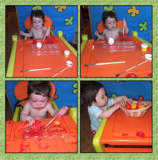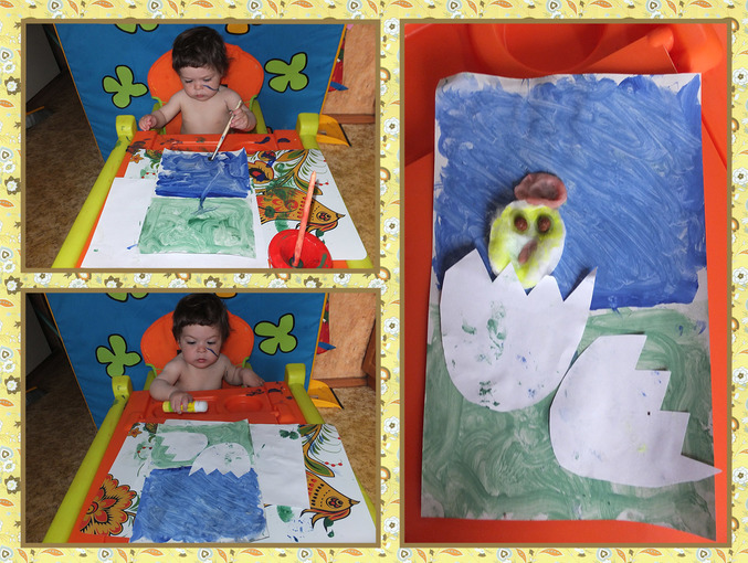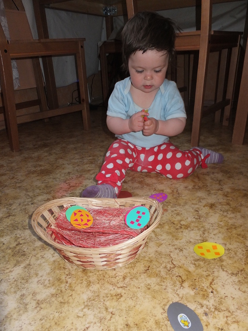 Еще мы собирали картонные яички в корзинку. (Яйца из картона оооочень недолговечные оказались)