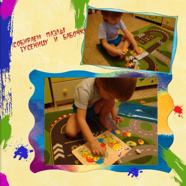 Собирали Гусеницу (деревянная рамка- вкладыш) и Бабочку (деревянный пазл)