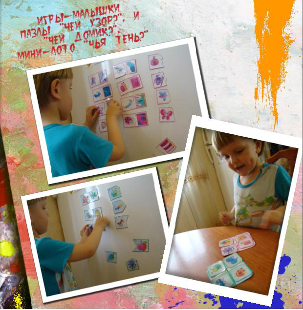 Опробовали игры- малышки. Чей узор? Чей домик? Мини лото.