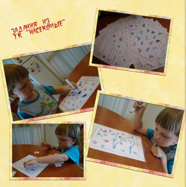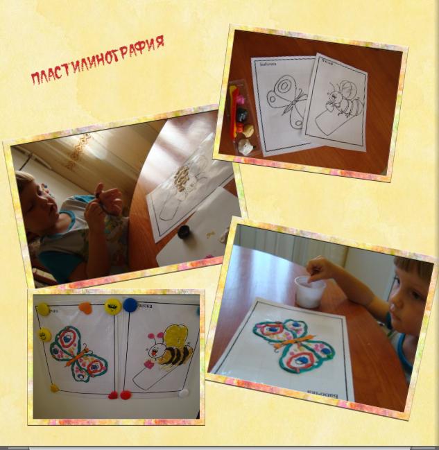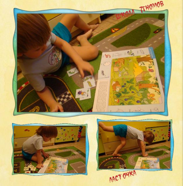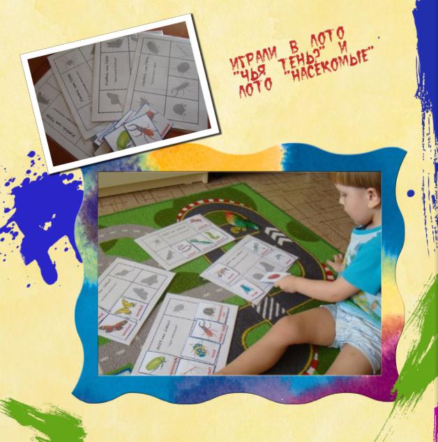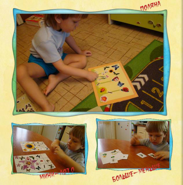 Создавал свою поляну с насекомыми, на шаблон, клеили наклейки цветов, бабочек, жуков, гусениц из серии 400 наклеек.