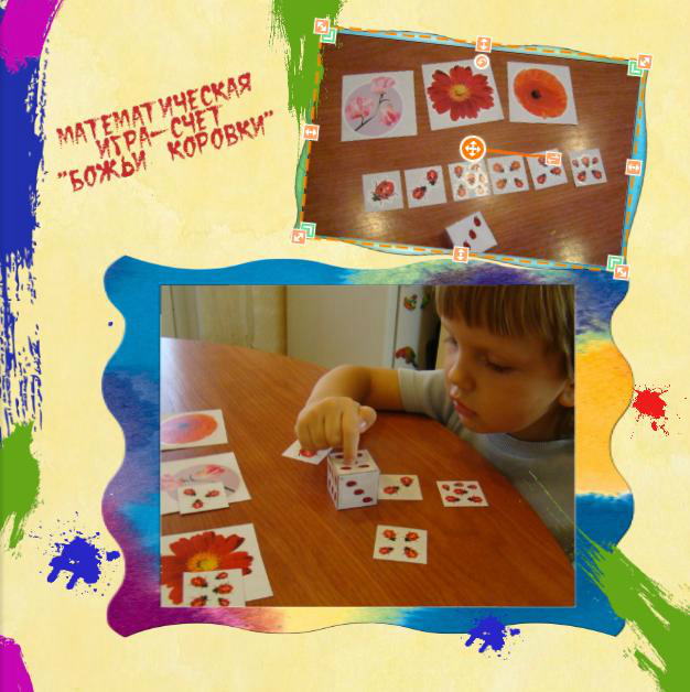 На скорую руку создала из этих же самых наклеек карточки больше - меньше(наклеила цветы разного размера и сответствующих размеров насекомых, нужно было распределить всех насекомых по цветкам, самых больших на самый большой цветок и т.д.), мини лото и математическую игру «Божьи коровки» на счет (бросаем кубик, считаем сколько выпало божьих коровок, ищем соответстующую карточку, и ложим на цветок, мы играем вдвоем, если повторно выпадают одни и те же цифры, тот игрок пропускает ход).