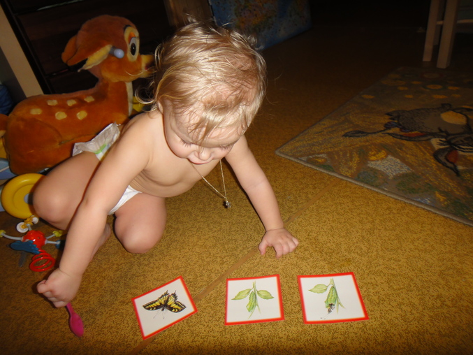 Затем мы вспомнили цикл развития бабочки. Раскладывали карточки в правильном порядке.