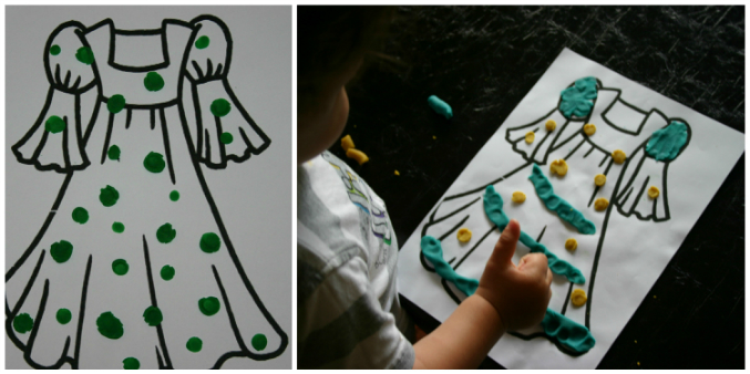 3. Вот понравилась очень такая игра. Распечатала на лист рубашку,наклеила двухсторонний скотч. Нужно было "пришить" пуговицы.Мы их пришивали,отдирали,и так много раз.