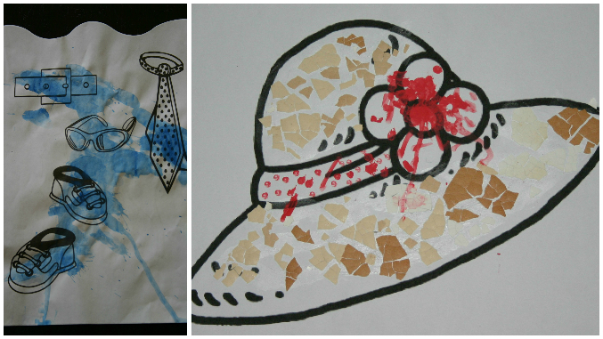 1. раскрашивали картинки всякой разной одежды красками,карандашами.