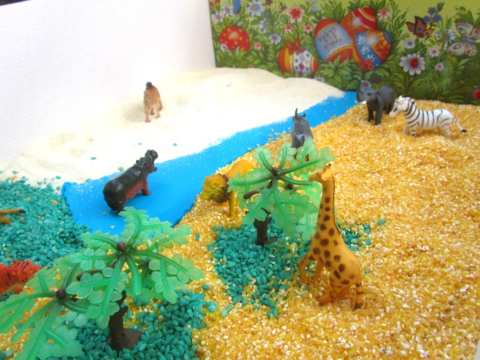 Ознакомление началось с сенсорной коробочки, в которой четко представлена Саванна, Пустыня и Река Нил