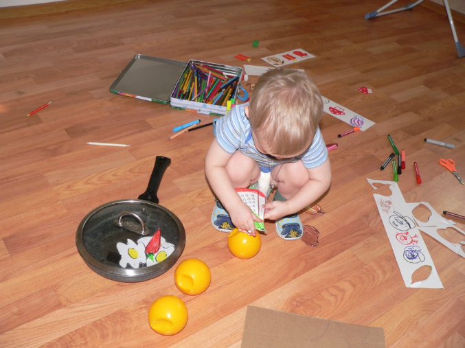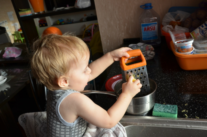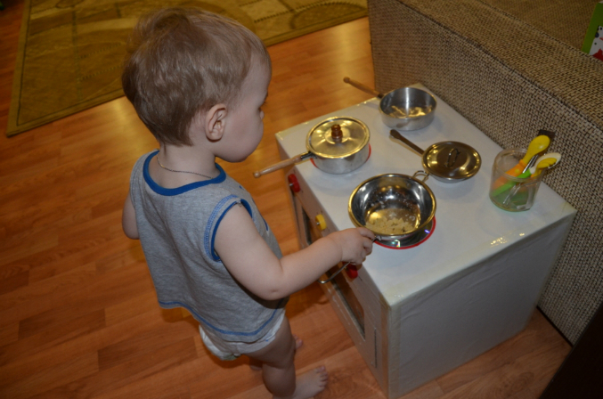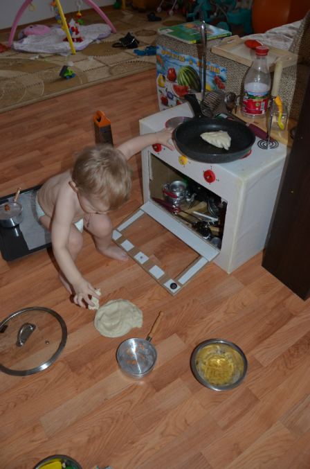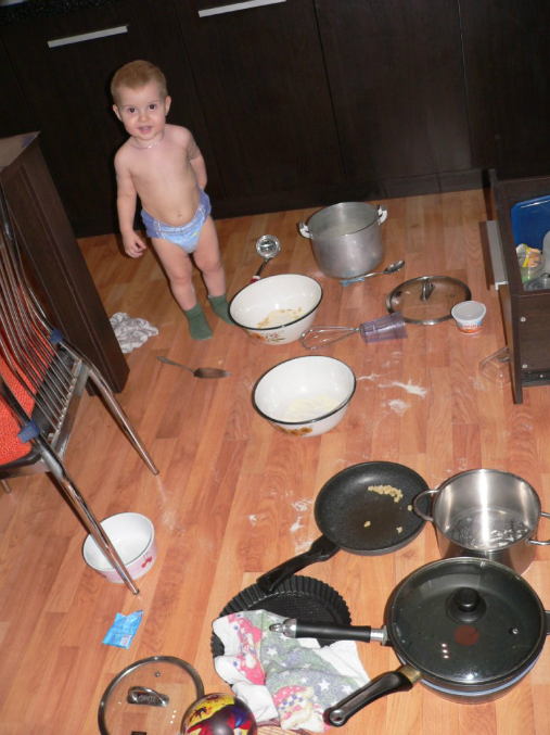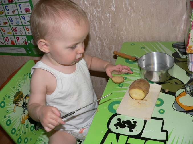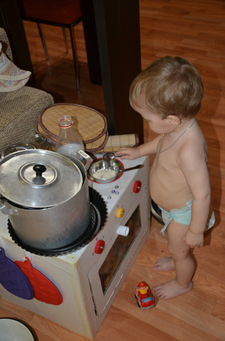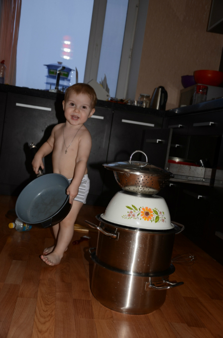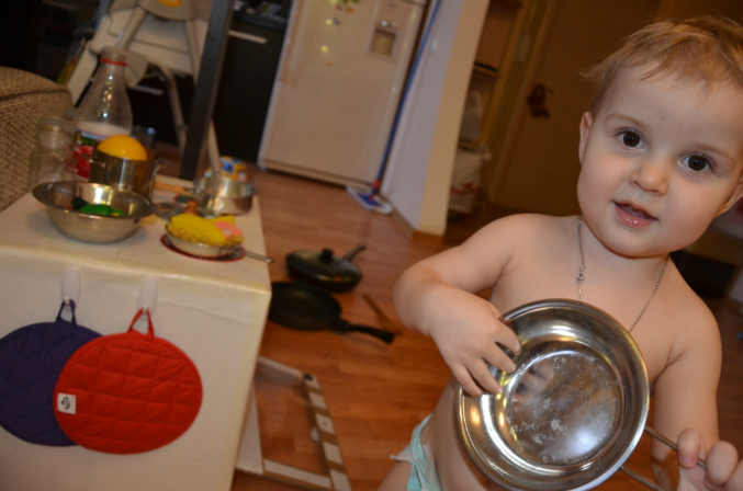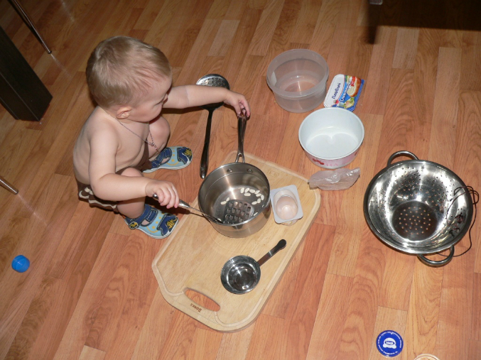 Посуда, мебель, бытовые приборы и т.п.Увлекся Геральд посудой еще в 9 месяцев и любовь не ослабевала вплоть до 2-х лет))))))) сейчас уже намного спокойнее относится ко всему, реже достает кастрюли, сковородки, НО навыков за этот год он набрался много - хорошо разбивает яйца, омлет, яичницу готовит только сам (я плям) я только контролирую плиту, все тесто мешает сам, трет на терке ( терпение быстро заканчивается) чистит вареные яйца, мандарины...сам все наливает себе в бокал, режет ( кромсает) колбасу, лук, перец и т.д. хорошо управляется столовым ножом, мажет масло на хлеб...
