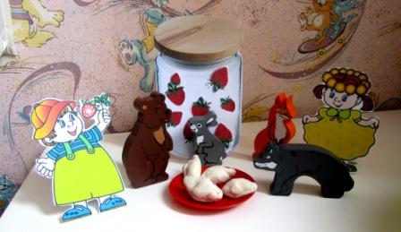 Следом творчество (привязанное к сказке) нужно налепить пирогов или пирог для медведя и его друзей и сделать земляничного варенья