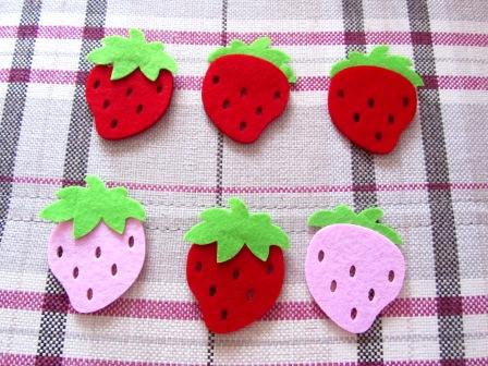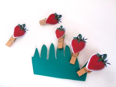 Нашла в закромах, вот такие фетровые землянички, они нам пригодилиссь для игры в последовательность