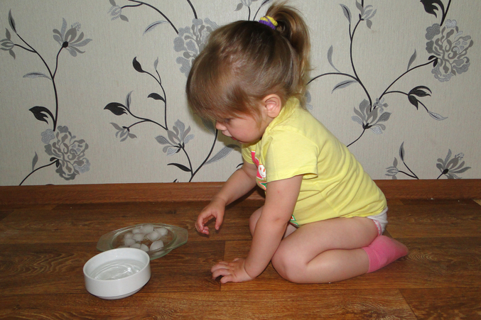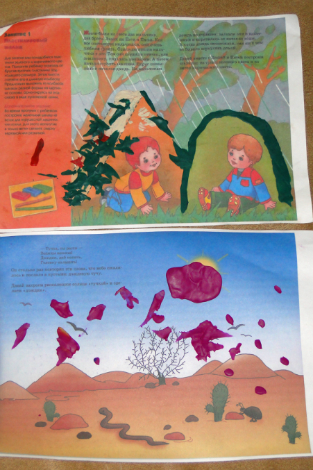 Взяли губку, тарелку с водой и цветочек. Губка - это было облачко, окунаем ее в тарелку, когда губка набирает воды - она превращается в тучку, из которой на цветочки капает дождик (в квартире потоп))))):