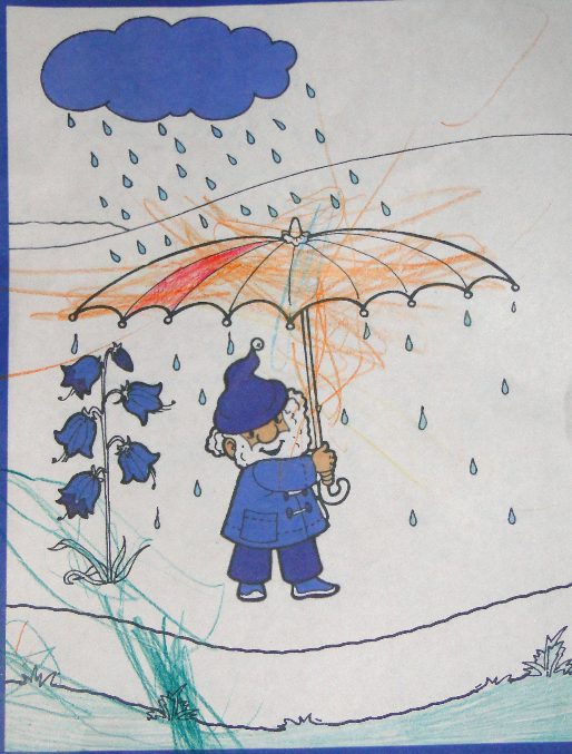 Гном укрылся под грибом (изображаем гриб - одна ладонь прямая с вытянутыми пальцами, другая как-бы шляпка)
