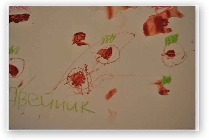 Немного взяли от просмотренного урока . Рисовали красками муравьев. Обводили их фломастерами. Рисовали им листики. Пытались подписать рисунок. Со второй половины занятия Артём сбежал. Не впечатлился пока, видимо не в настроение.