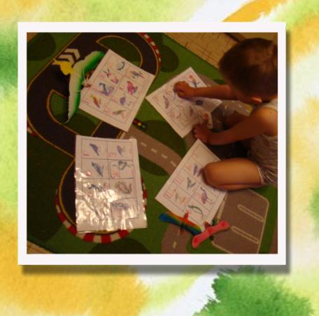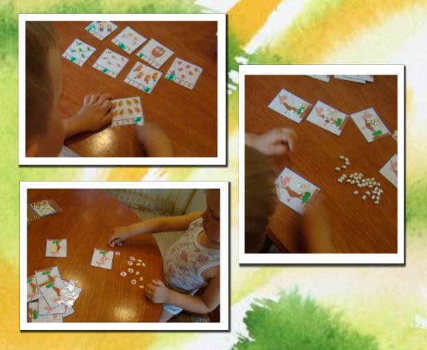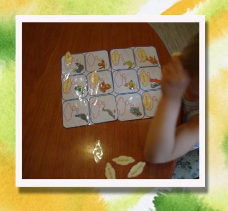 К коробкам прикрепила изображения птиц (тех, кто питается насекомыми, лягушками, орешками и т.д.) Ребенку нужно было накормить птичек их любимой едой. Пинцет у нас был клюв, с помощью него нужно было поймать лягушек и насекомых и т.д.